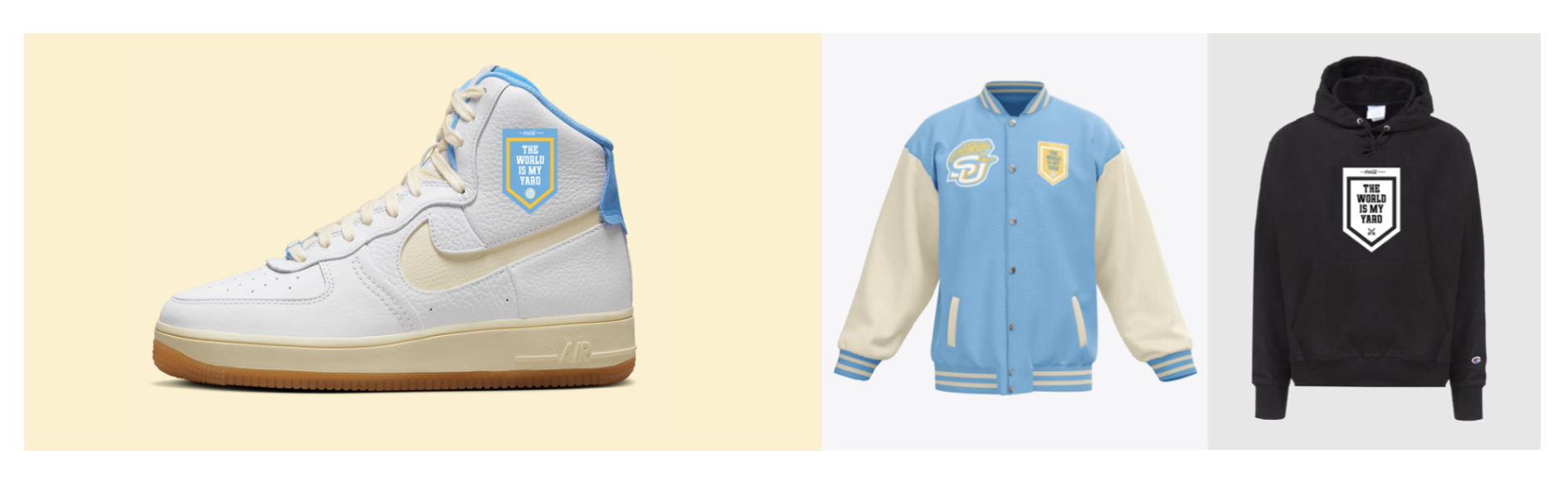 This visual concept taps into HBCU pride using visual cues that connect to the heritage and tradition of classic HBCU collegiate style, including banners, iconography and typography used in apparel, but interpreted with a contemporary take that leverages the bold attitudes, confidence and swag of modern co-eds.